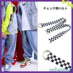 ブラックホワイトチェック柄ベルト ダンス衣装キッズヒップホップ リングベルト ロゴテープ ダンスファッション