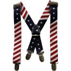 サスペンダー 子供用 X型 ゴム 長さ調節可能 2.5cm幅 長さ約44cm〜65cm(星条旗, キッズサイズ)