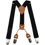 サスペンダー 子供用 X型 ゴム 長さ調節可能 2.5cm幅 長さ約44cm〜65cm(ブラック無地, キッズサイズ)