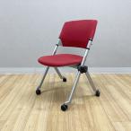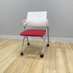 中古 オカムラ 平行スタッキングチェア リータ 肘無 レッド キャスター付 ネスティング可 会議椅子 ミーティングチェア H162ZS IS-880256B