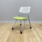 内田洋行 スタッキングチェア ミーティングチェア 肘無 FM-265 キャスター付 ウチダ グリーン 中古 IS-880761B