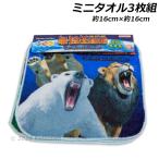 最強王図鑑 ミニタオル3枚組 約16×16cm ポリエステル60%・綿40% タオル ハンカチ プチタオル 動物 昆虫 恐竜 2024‐2025年