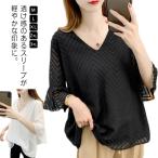 トップス ブラウス Vネック 体型カバー Tシャツ きれいめ カジュアル おしゃれ 送料無料 上品 薄手 シンプル ゆったり ビッグシルエット チュニック 春 韓国 フ