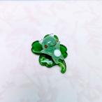 ガラス細工 居眠りカエルと四つ葉 ミニチュア 雑貨 置物 小物 蛙