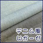 ☆デニム風ダブルガーゼ☆『ストライプ柄』生地 コットン100%ダブルガーゼ生地/Wガーゼ/ダブルガーゼ/デニム/デニム風/ガーゼ/デニム調/ストライプ/ヒッ…