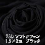 75D ソフト シフォン 生地 カラー ブラック 黒 無地 約 2m×幅1.5m ハンドメイド 手芸 用 単色 薄手 柔軟 (送料無料)hos-a71
