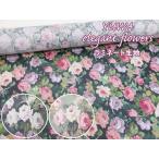 YUWA 定番 エレガントフラワーズ 花柄 コットンリネンキャンバス生地 ラミネート つや消し