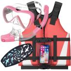 シュノーケル・マスク・ライフベスト3点セット 防水スマホケース マスクのストラップカバー付き(Kセット)