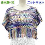 毛糸 スーパーウォッシュ アルチザン 段染めで編むフリンジのポンチョ セット 編み物キット