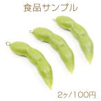 食品サンプル 食品サンプルキーホルダーチャーム ミニチュアフード プラスチック製 枝豆チャーム カン付き 1.5×6cm(2ヶ)