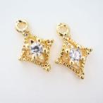 金アレ対応 真鍮製 角型 CZ ミニ チャーム パーツ 2個