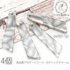 スティックチャーム 約35mm 横穴 ビーズチャーム 高品質 アセテートシート 4個/グレー系