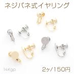 イヤリング パーツ ネジバネ 平皿タイプ ゴールド 15.5mm ゴールド 5ペア 金属アレルギー対応 ニッケルフリーカン付 真鍮 イヤリング金具