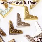 コーナー金具 約17mm 20個入 ■ 内寸約5.5mm 飾り 保護 隅金 角金 補強 角カン 手帳 クラフト カルトナージュ アンティーク ゴールド シルバー ■