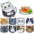 ダイヤモンドアート コースター 手芸キット 5D DIY 8枚セット ホルダー付き 初心者 子供 大人向け かわいい アートクラフト用品