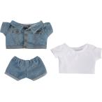 ぬい服 ぬいぐるみ 20cm デニムジャケット ズボン Tシャツ 人形(ライトブルー, 20cm)