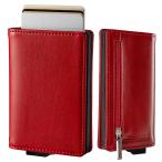 [zepirion] キャッシュレスに最適化 クレジットカードケース スキミング防止 磁気防止 スライド式 アルミニウム PUレザー レッド(レザー)