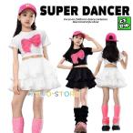 ダンス衣装 キッズ セットアップ K-POP 韓国 ガールズ ヒップホップ 衣装 チアダンス リボン ヘソ出しトップス スカート 派手 白 黒