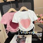 Tシャツ 女の子 ダンス 普段着 半袖 ピンク ホワイト ハート KPOP風 アイドル 可愛い おしゃれ 双子コーデ 110 120 130 140 150 160