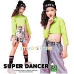 キッズ ダンス衣装 ガールズ かっこいい セットアップ へそ出し 韓国 ファッション 黄緑 シルバー