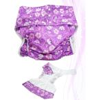 花柄デザイン 大人用 布 おむつカバー ウエスト調節可能 洗濯可(パープル)