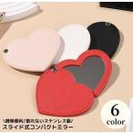 コンパクトミラー ハンドミラー 手鏡 ステンレス製 レザー調 割れない スライド式 ハート型 等倍鏡 ミニ メイク 携帯 可愛い