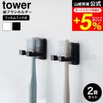tower 山崎実業 フィルムフック歯ブラシホルダー タワー シングル 2個組 公式 10033 10034 ホワイト ブラック / ハブラシ 2本 吊り下げ