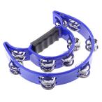 ハンドヘルドタンバリンダブルローメタルジングルミュージカルパーカッションギフト - ブルー