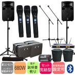 YAMAHA(ヤマハ) STAGEPAS600BT SOUNDPURE ワイヤレスマイク ハンドタイプ4本 マイクスタンド4本 スピーカースタンド(JS-TS50-2) セット