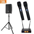 スピーカースタンド付き■JBL 簡易PAセット ワイヤレスマイク2本付き 1300W パワードスピーカー IRX108BT-Y3 セット