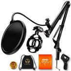 マイクスタンド マイクロフォンスタンド マイクホルダー マイクロフォンホルダー 卓上 置き型 三脚 ポップガード付き シンプル マイク マイクロフォン