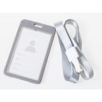男女兼用 両面クリア IDカードネームホルダー 名札 ハードケース 縦型 ストラップ付き#グレー