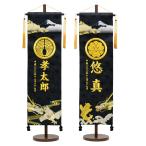 【家紋入り】パワーストーン房付 彩刺繍名旗台付きセット 特大 白鷹と龍/鯉と龍 名前旗 刺繍入り 旗サイズ76cm【五月人形】【男の子】