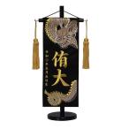 名前旗 男の子用 天翔龍(金) 5464 小 高さ39cm 黒地紗綾形柄生地 名前糸金MG2 金茶房 スタンド式 五月人形 端午の節句 刺繍入 名前入 初節句