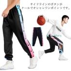 裾ボタン バスケットボールパンツ ジャージパンツ スナップボタン 長ズボン 吸汗 速乾 ドライ バスケパンツ バスケットボール バスパン サイドライン
