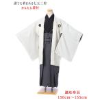かんたん着付け 小学生 卒業式 男 ジュニア用紋付袴セットレンタル8AQL33 紋付きフルセット 着物レンタル 12歳〜13歳 150cm〜155cm位まで 白 グレー袴 爆買