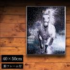 水晶パネル アートパネル 40×50cm 50×40cm 白馬 駿馬 銀フレーム付き クリスタル シルバー 絵 イラスト おしゃれ 高級感 KH5322