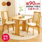 3000円OFFクーポン ダイニングテーブルセット 2人 回転 肘付き おしゃれ 北欧 90×90 T字 2本脚 食卓 テーブル 椅子 木製 ハイバックチェア