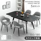 セラミック 伸縮 ダイニングセット 4人掛け 5点セット ダイニングテーブルセット 伸長式 幅130~幅170 合皮 アイアン 鏡面 ダイニングチェア 耐水 代引不可