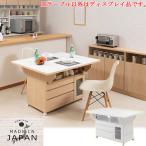 バタフライテーブル キャスター付き 収納付き 幅119.5cm 天板折り畳み式 木製 日本製 完成品 キッチンカウンター キッチンワゴン カウンター収納