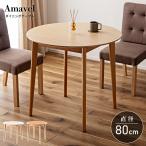 ダイニングテーブル 幅80cm 2人用 北欧 ラウンドテーブル 円形 丸 天然木 おしゃれ シンプル 食卓机 木目調 白 ナチュラル カフェテーブル 在宅勤務 デスク