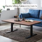 電動昇降テーブル 135cm ダイニングテーブル センターテーブル 無段階高さ調節 49〜74cm ウォールナット テレワーク メモリ機能付 チャイルドロック付 安全装置