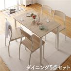 ダイニング セット 5点 テーブル チェア 4脚 ナチュラル × ホワイト フェミニン モダン 北欧 木製 スチール デザイン 4人掛け 代引不可