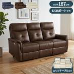 電動リクライニングソファ 開梱設置無料 3人掛け 本革 レザー 幅187cm USBポート付き カップテーブル付き 左右独立 三人掛け ソファー 電動ソファ 代引不可