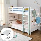 二段ベッド 大人用 子供 天然木 シングルベッド マットレス 2枚セット おしゃれ 敷布団 すのこ 子供用 子供部屋 Wat(ワット)+Unity(ユニティ) 4色対応