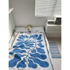 北欧 ボタニカル柄 ブルー インテリア ベッドカバー汚れ防止 洗える 四季通用 130X160cm