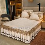 【値下げ】ベッドカバー ベッドシーツ スカートシーツ シングル セミダブル ダブル 姫風 可愛い レース 中綿入り 秋冬用 厚地 吸湿 通気 単品販売