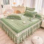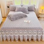 宮廷風 姫系 ベッドスカート フランネル レース キルティング 敷きシーツ 厚手 防寒 秋冬 マットレスカバー 洗える 静電気防止 肌に優しい ベッドカバー 快眠