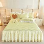 ベッドスカート 無地 ベッドスプレッド ベッドシーツ 3点セット 可愛い ベッドカバー ダブル シングル かわいい マットレスカバー 柔らかい プリンセス風