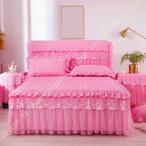 姫系 柔らかい ベッドカバー ベッドスカート ベッド用品 寝具 可愛い 枕カバー シーツカバー 四季通用 レース 無地 ベッドスプレッド 敷きパッド
